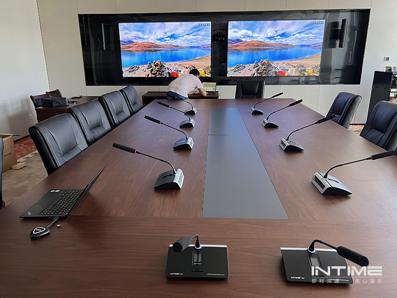 INTIME 为客户打造整洁干净的视频会议场所发表时间:2022-08-22 17:14 我们的技术小哥正在对相关设备进行现场调试和安装步骤,测试中的相关设备的配合是否有异样,排查对会议体验产生影响的可能和事件。 两块高素质的1080P显示器和会议级摄像机、音响相互搭配,提供专业的远程视频会议,为云端会议保驾护航,优秀的布线手法避免各路线缆陈杂美观而大方。 使用大范围拾音且互不干扰的抗噪音鹅颈话筒是整套手拉手会议系统的采集声音设备,无线连接方式也能提升场所的整洁性,避免会议桌面的杂乱布置的连接数据线,不占空间,整齐划一。